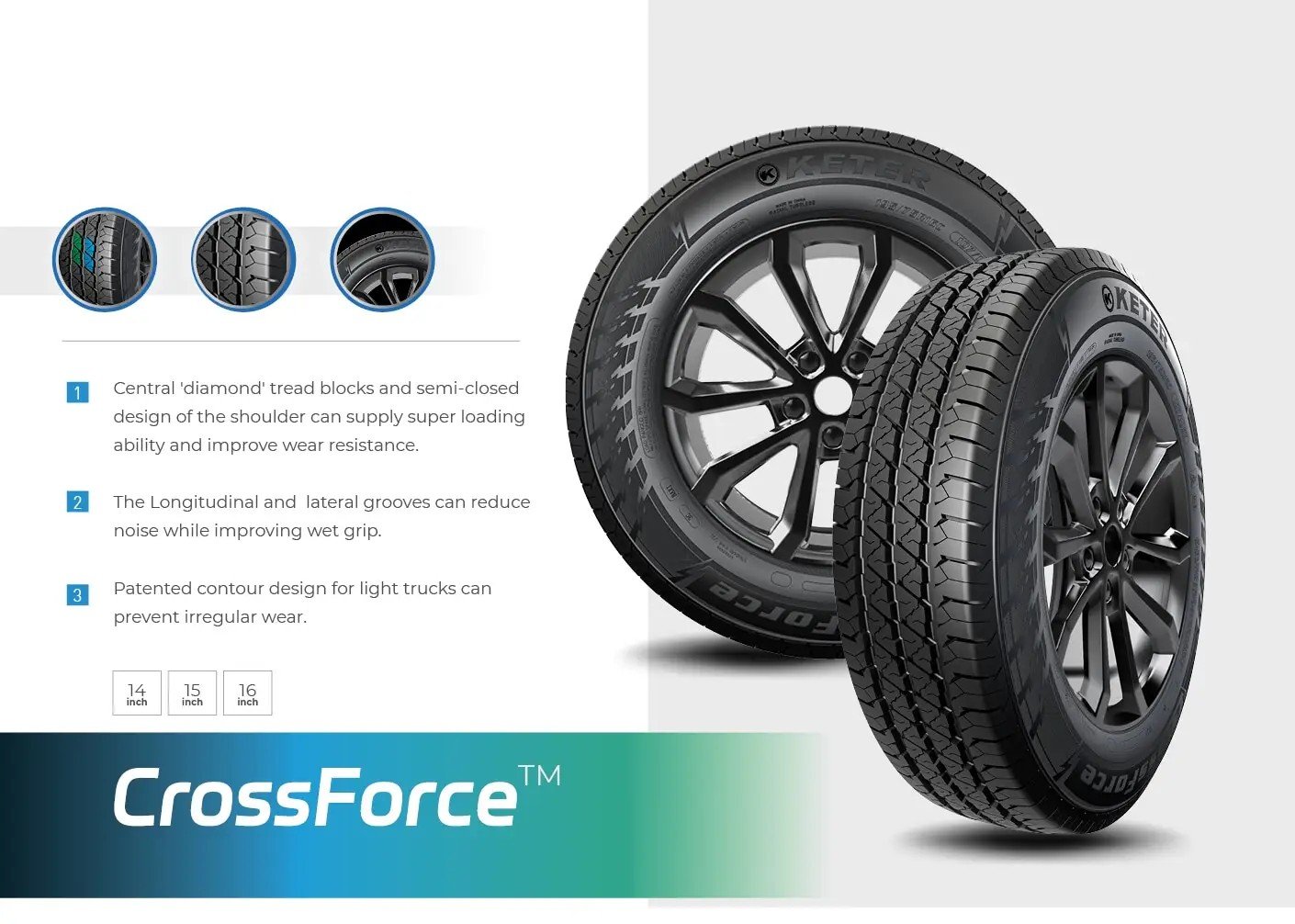 Central 'diamond' tread blocks and semi-closed design of the shoulder can supply super loading ability and improve wear resistance.